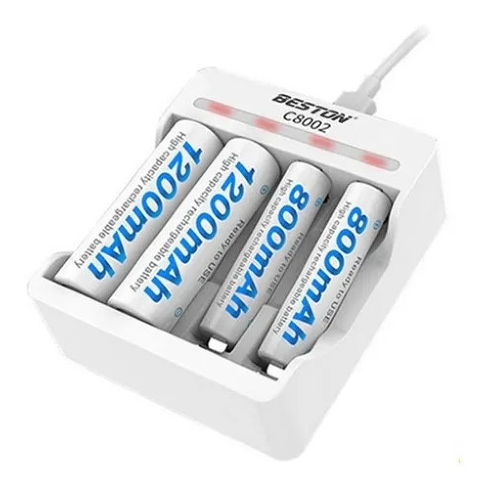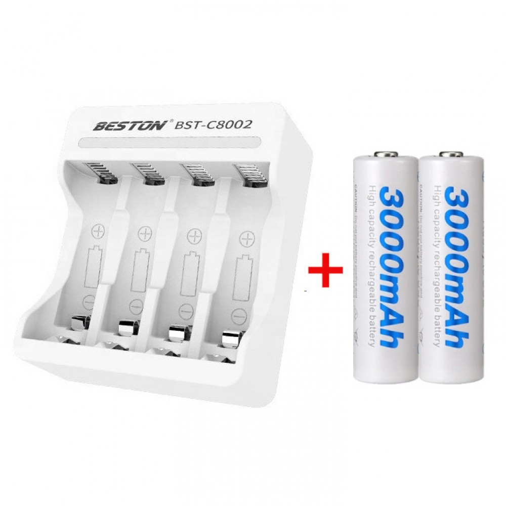 КомплектацияВ комплект поставки Beston C80022AA входит зарядное устройство, кабель Micro USB, два аккумулятора АА 3000мАч. |