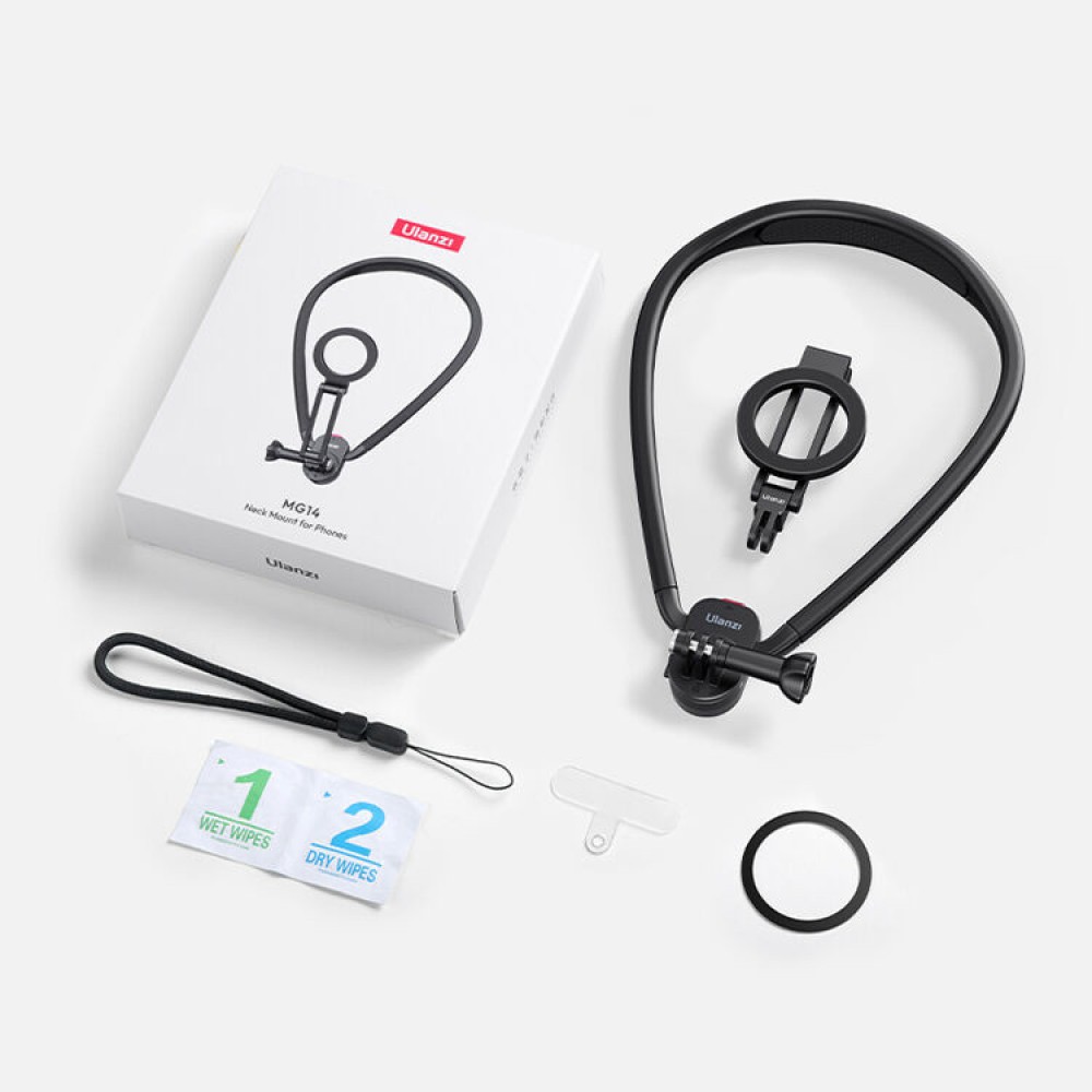 КомплектацияВ комплект поставки Ulanzi MG14 входит магнитный держатель для телефона или экшн-камеры на шею, кольцо для смартфонов без поддержки MagSafe, страховочный ремешок. |
