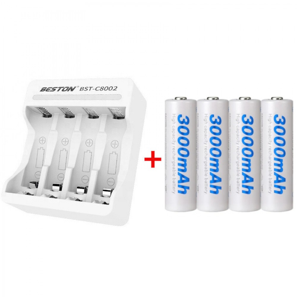 Зарядний пристрій та чотири акумулятори АА 3000мАч Beston C80024AA
