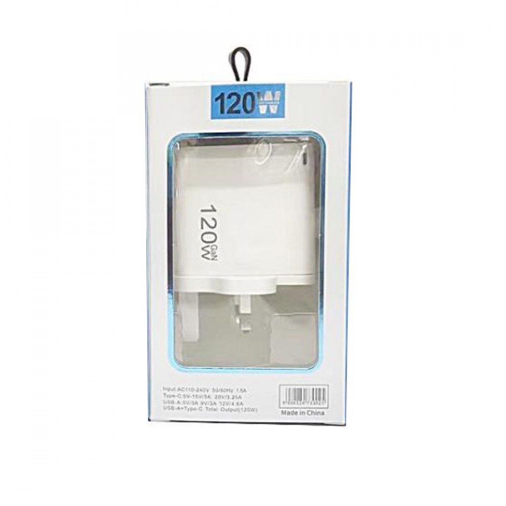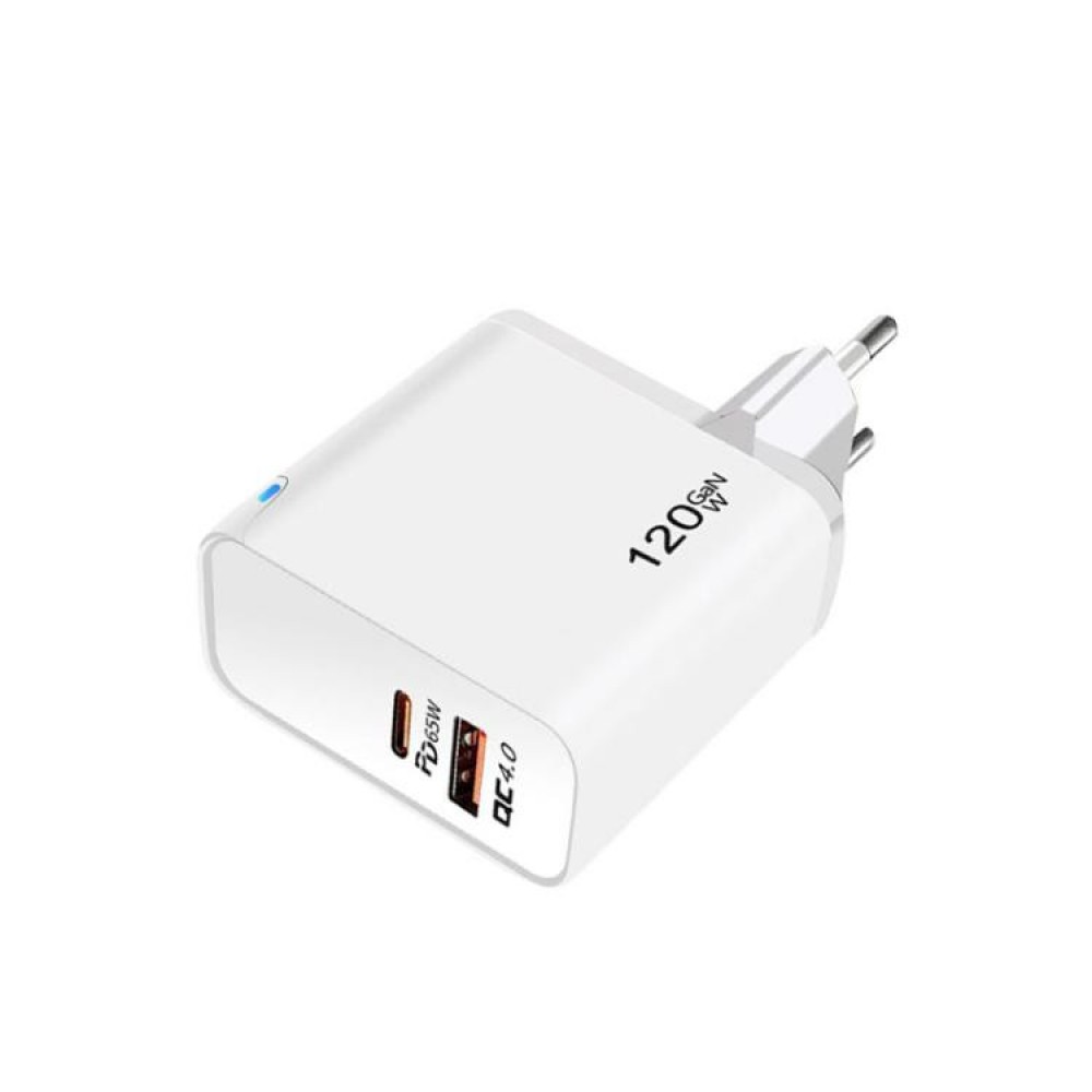 Зарядка 120Вт GaN Type-C PD 65Вт + USB QC4.0 біла Puluz TE-PD65W