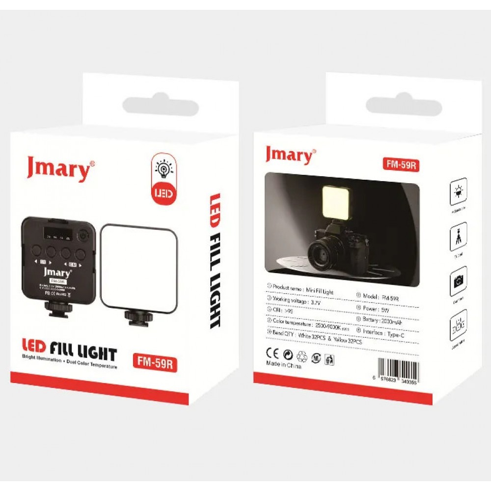 Накамерне світло міні відеосвітло 5Вт 2500-9000К CRI 95+ Jmary FM-59R