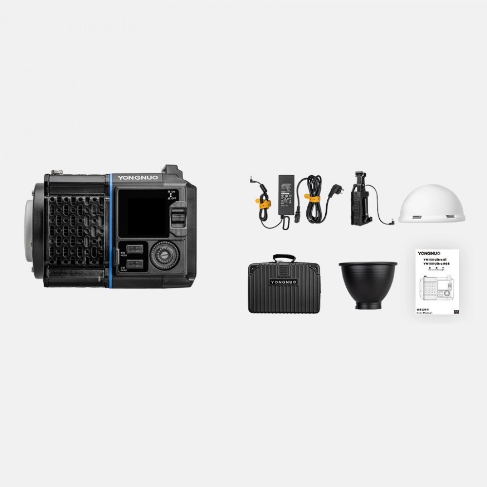 КомплектаціяУ комплект поставки Yongnuo YN150 Ultra Bi-Color Kit входить постійне світло 150Вт, рефлектор, силіконовий розсіювач, блок живлення в розетку, ручка/тримач двох акумуляторів NP-F, кейс для зберігання. |