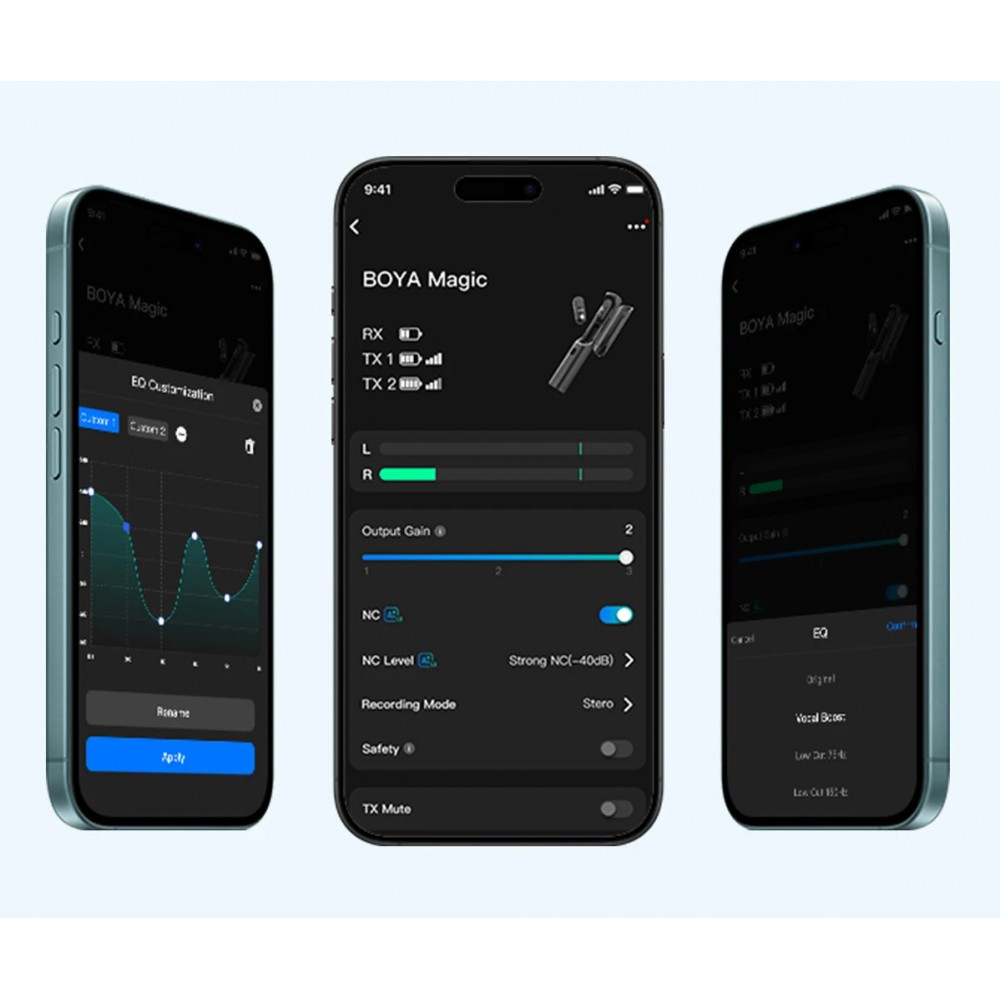 КомплектаціяУ комплект поставки Boya Magic входить два петличні мікрофони, приймач для камери, приймач Type-C, Lightning, кейс-корпус-зарядка для мікрофона, два хутряні вітрозахисти на петлички, хутряний та поролоновий вітрозахист на накамерний мікрофон, два магнітних тримача мікрофона під одяг, кабель для заряджання, сумка для зберігання. |