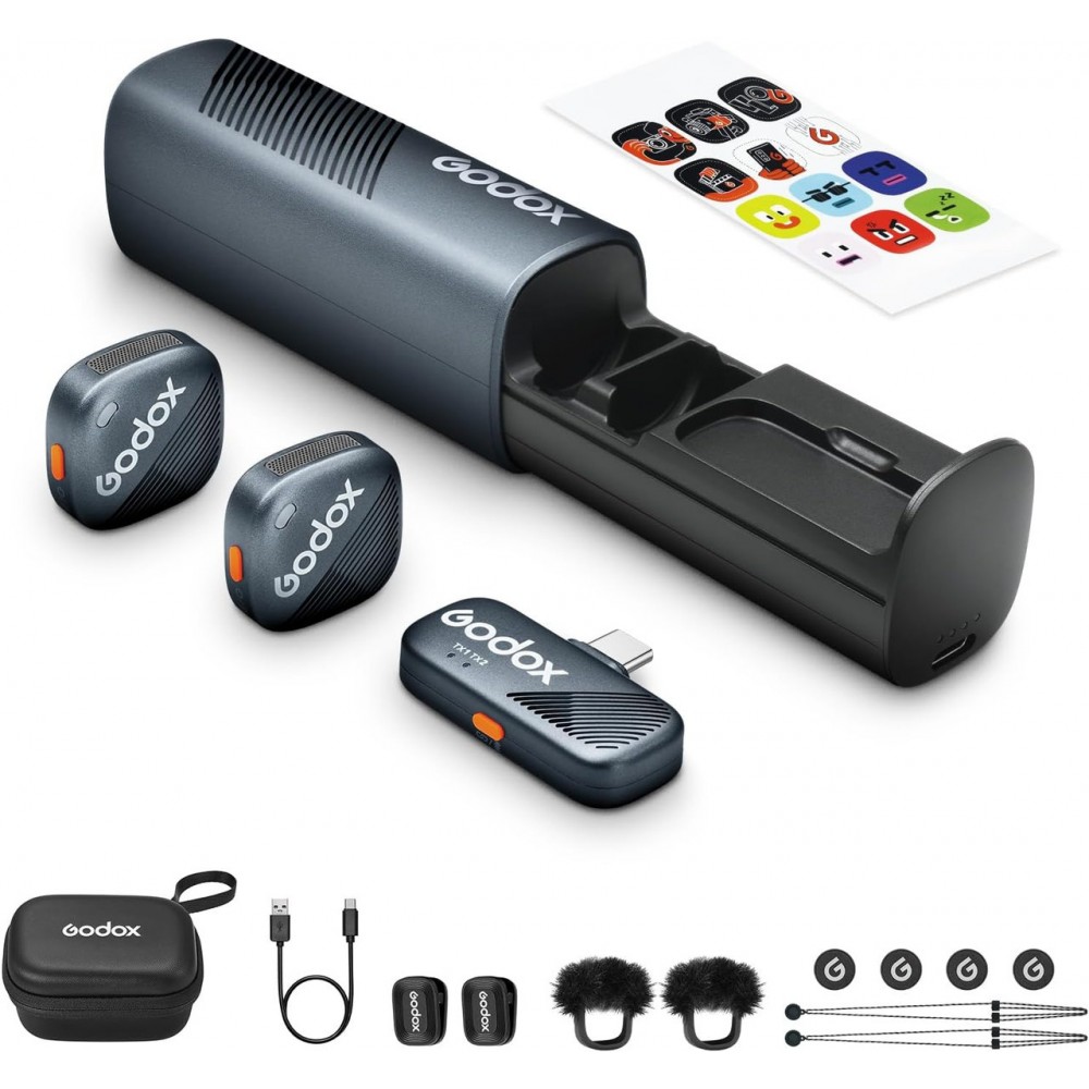 Мікрофон бездротовий для телефону подвійний з кейсом зарядкою Type-C Godox Cube-SC Kit2