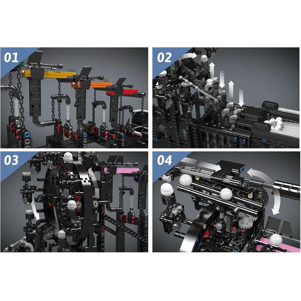 КомплектаціяУ комплект поставки Mould King 26006 входить 2520 деталей конструктора для будівництва лабіринту з кульками GBC Rainbow Tensegrity, один великий двигун, акумуляторний блок. |