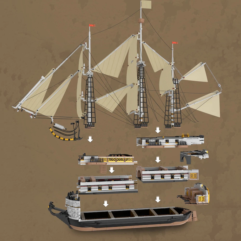 КомплектаціяУ комплект поставки Reobrix 66048 входить 3555 деталей конструктора для будівництва корабля Індевор. |