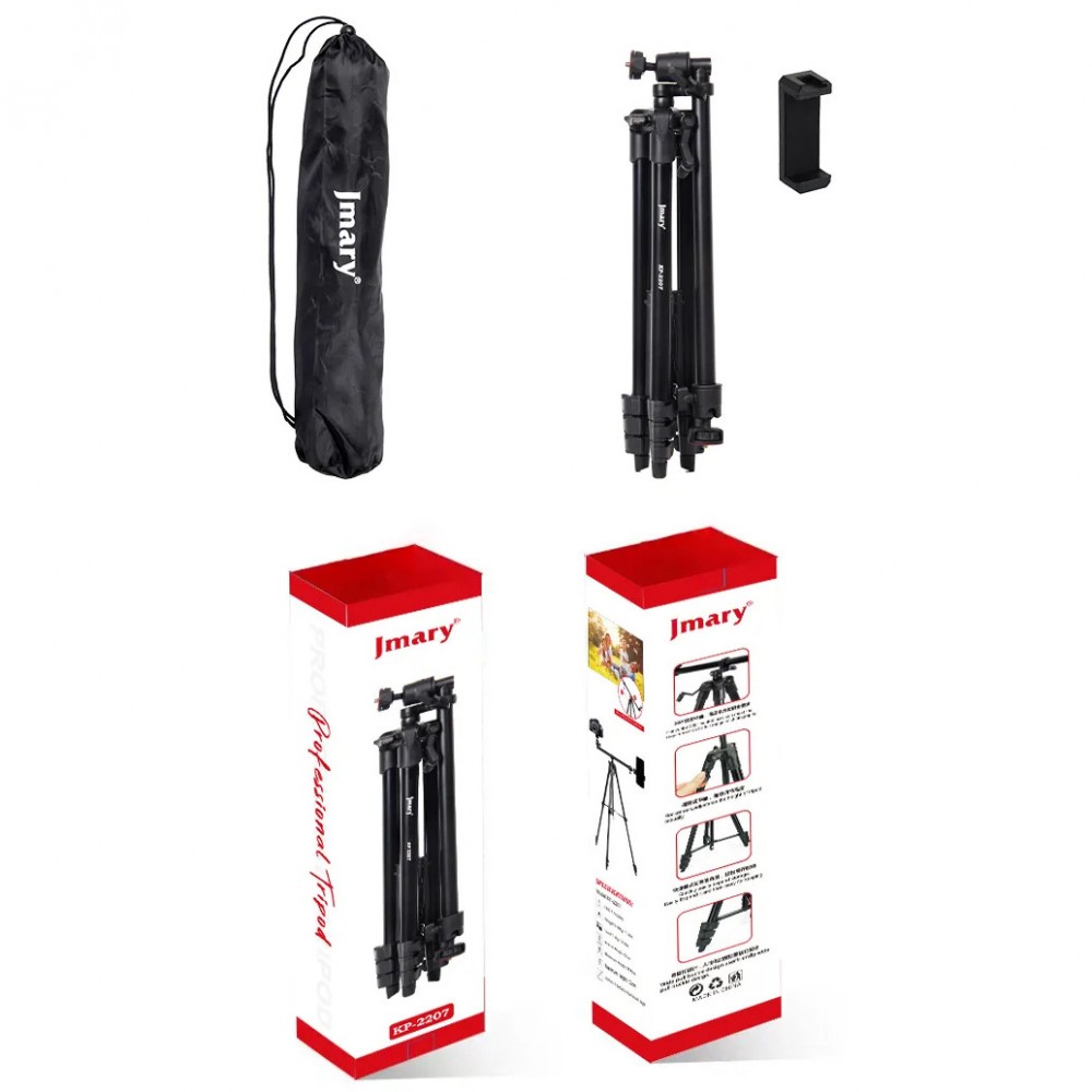 КомплектаціяУ комплект поставки Jmary KP-2207 входить штатив, горизонтальна штанга, дві кульові головки, тримач для телефону, чохол для зберігання. |