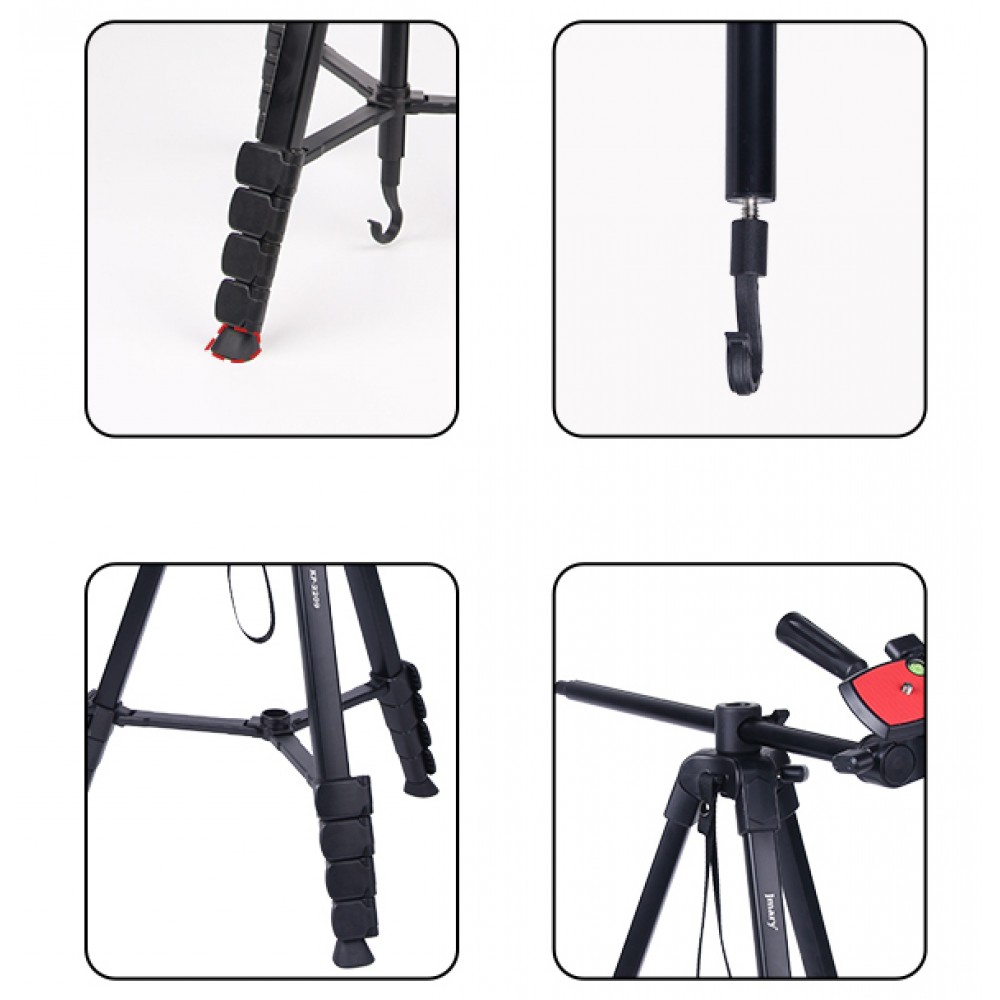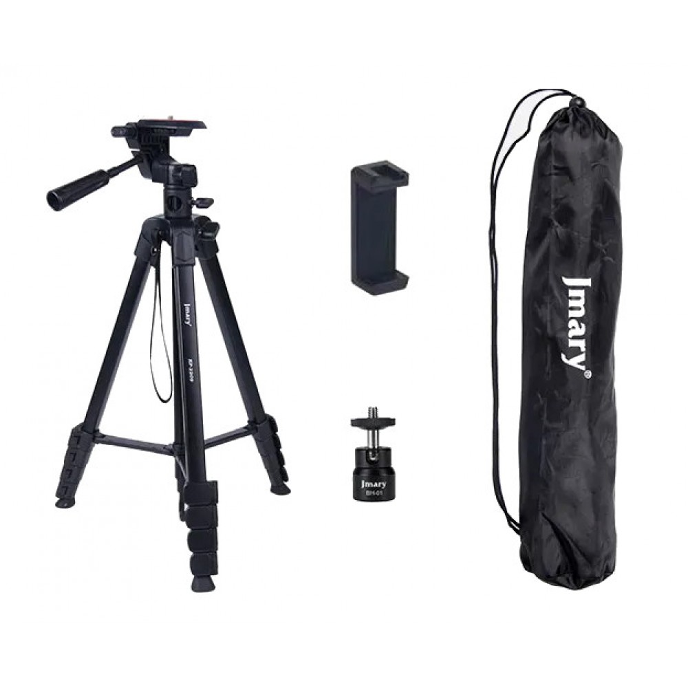КомплектаціяУ комплект поставки Jmary KP-2209 входить штатив, штанга з панорамною головкою, кульова головка, тримач для телефону, чохол для зберігання. |