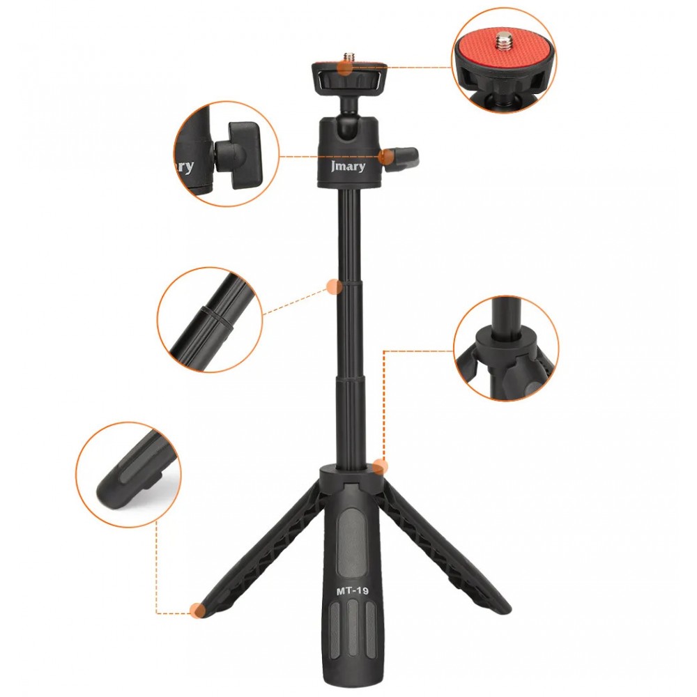 КомплектаціяУ комплект поставки Jmary MT-19 входить штатив-ручка із кульовою головкою, тримач для телефону. |