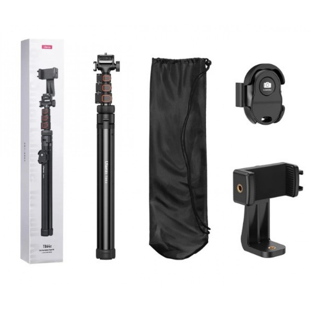 КомплектаціяУ комплект поставки Ulanzi TB64Z входить стійкий високий штатив з нахилом, тримач для телефону з поворотом, Bluetooth пульт керування, чохол для зберігання. |