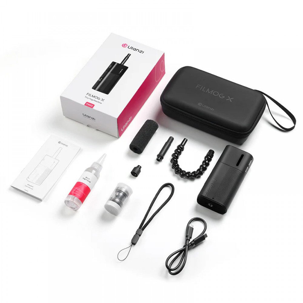 КомплектаціяУ комплект поставки Ulanzi Filmog X FM02 входить дим машина портативна, атомайзер, гнучка і пряма насадка, губка, рідина для диму, ремінець на руку, кабель зарядки, кейс для зберігання. |